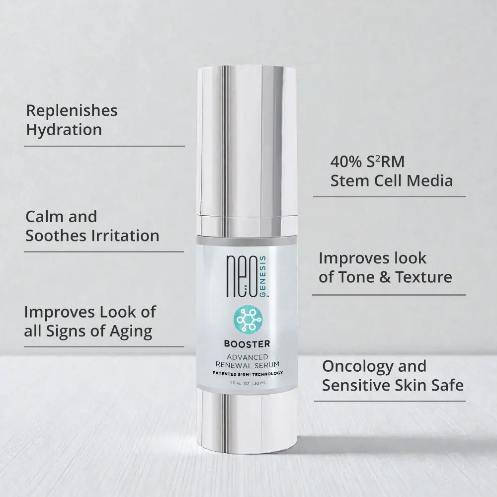 NeoGenesis Booster Serum is the daily reset for skin that needs calm, hydration, and advanced cellular support for a visibly healthier look.